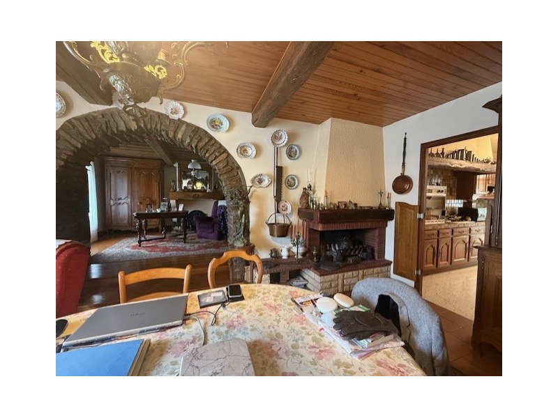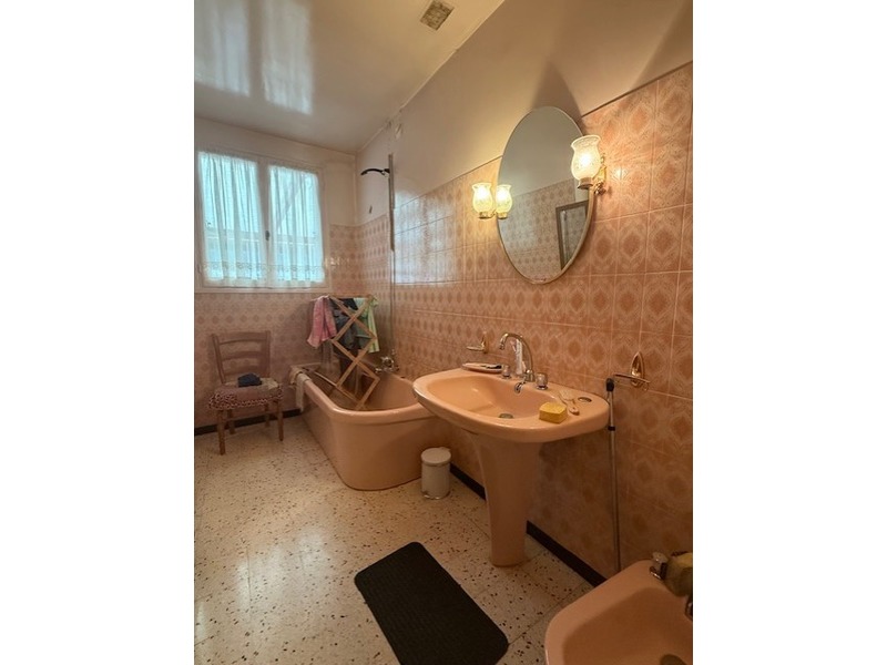 Au milieu : garage pour 1 ou 2 VL, maison S.H : 127 m² comprenant : entrée. Au 1er : palier desservant cuisine aménagée avec accès véranda non chauffée et jardin, salon-séjour avec cheminée, accès balcon, 3 chambres, salle de bains, WC. CC Gaz.
