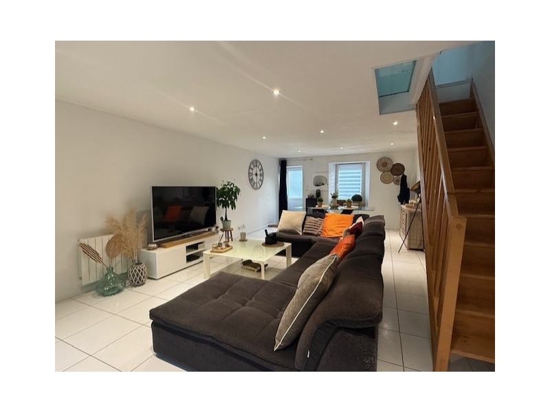 Une maison côté droit louée, cuisine équipée ouverte sur salon-séjour (avec poêle à granulés) accès terrasse non attenante.